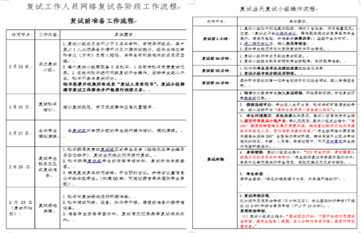 招生复试工作推进表 复试专小组各阶段工作流程