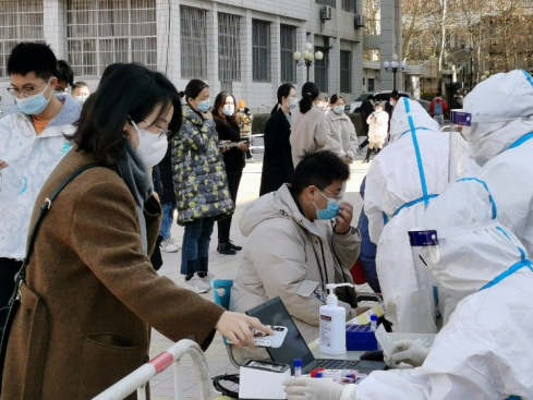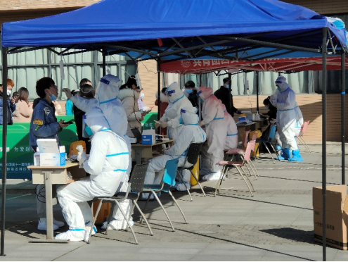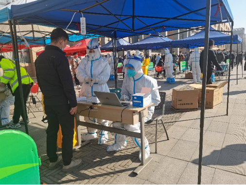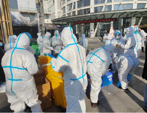 疫情就是命令!为配合南校区全员核酸检测,12月21日上午学院招募老员工志愿者,2018级本科生同学积极报名,群里党员同学喊出了“党员先上”的口号。志愿者同学们纷纷穿上隔离服,冲在抗疫一线,投入了紧张的检测工作。