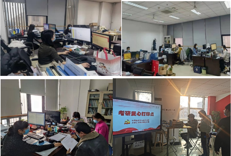 12月23日是西安市按下暂停键的第一天,威廉希尔官网两间辅导员办公室全体学工干部均自动到岗,有的导员老师干脆搬到学校住。一上班,各位辅导员老师在岗紧张工作,及时传达学校防疫工作要求,组织、督促同学们参加核酸检测,填报晨午检。19级辅导员主动服务在学校隔离观察的14位同学,帮助他们了解近期的线下实验课、期末考试安排,协助申请线上考试,送上问候。18级辅导员积极了解研究生考试相关安排要求,为考研学子答疑解惑,排忧解难。得知因校内打印店关闭,同学们打印核酸报告等有困难,导员马上组织党员同学设立考研爱心打印点。学院还有三位同学突发疾病,辅导员克服困难联系医院,帮助同学及时就医,协助办理住院、检查等手续。南校区机关办公室工作人员也坚守岗位,积极沟通协调,加班加点准备期末考试资料,做好教务服务等工作。