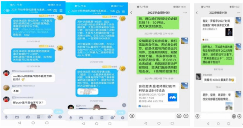 田玉敏、王笛老师结合疫情发展,及时调整了第二学位工程设计中期答辩方式,保证了学习实践进度;程飞、杨鹏飞、赵辉等嵌入式计算技术研究所青年教师在学术带头人王泉教授和团队负责人万波教授的指导下,结合研究生开题需求,组织了硕士开题专场研讨,帮助员工快速掌握报告撰写技巧和找准科研方向;张剑贤老师在完成课程教学内容基础上,积极开展线上答疑,保证了课程教学效果,同时与毕设同学建立线上联系,详细分析了每个毕业设计题目的要求及任务安排,讲述了如何进行文献资料的查找和分析整理,并点评了多篇优秀本科毕设论文。赵辉、王笛、夏小芳等青年老师还积极参与到学院组织的“同心战疫、云上学术”系列活动中,给大家带来了精彩的学术报告,为提升员工科研能力和学术水平贡献力量。