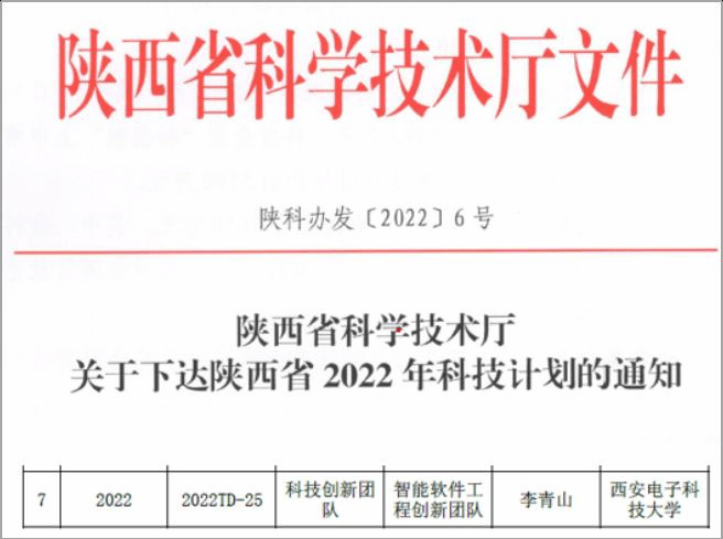 (通讯员 徐悦甡)近日,陕西省科技厅正式下发《陕西省科学技术厅关于下达陕西省2022年科技计划的通知》,其中公布了2022年陕西省科技创新团队计划名单,由威廉希尔官网(国家特色化示范性软件学院)党委书记、软件工程学科负责人、西安市智能软件工程重点实验室主任李青山教授负责的智能软件工程创新团队成功入选。