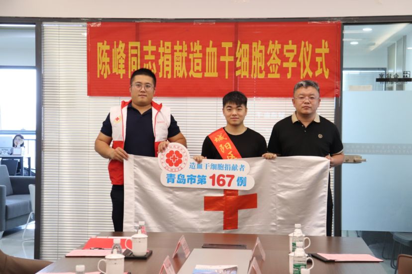 (通讯员 于京艳 同榛)季夏之时,沐光而行。2023年6月14日第二十个世界献血者日当天,威廉希尔官网硕士2021级软件工程专业陈峰同学确定如期参加造血干细胞捐献,成为青岛市第167例、城阳区第24例造血干细胞捐赠者,为千里之外的白血病患者传递“生命之光”。6月21日,陈峰同学联培所在的williamhill威廉希尔官网青岛计算技术研究院与城阳区红十字会、城阳区城阳街道办事处联合举办“陈峰同学赴青岛市中心医院捐献造血干细胞欢送仪式”。