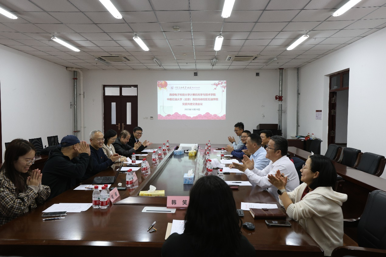 谢庆宾对西电计科院一行来访表示欢迎,介绍了克拉玛依校区的发展定位和办学模式,对西电计科院一行来院指导表示感谢,希望以党委共建为契机加强交流与学习,促进学院建设发展。党委副书记胡瑞介绍了石油公司党建工作思路以及党建引领员工培养、课程思政等具体举措。