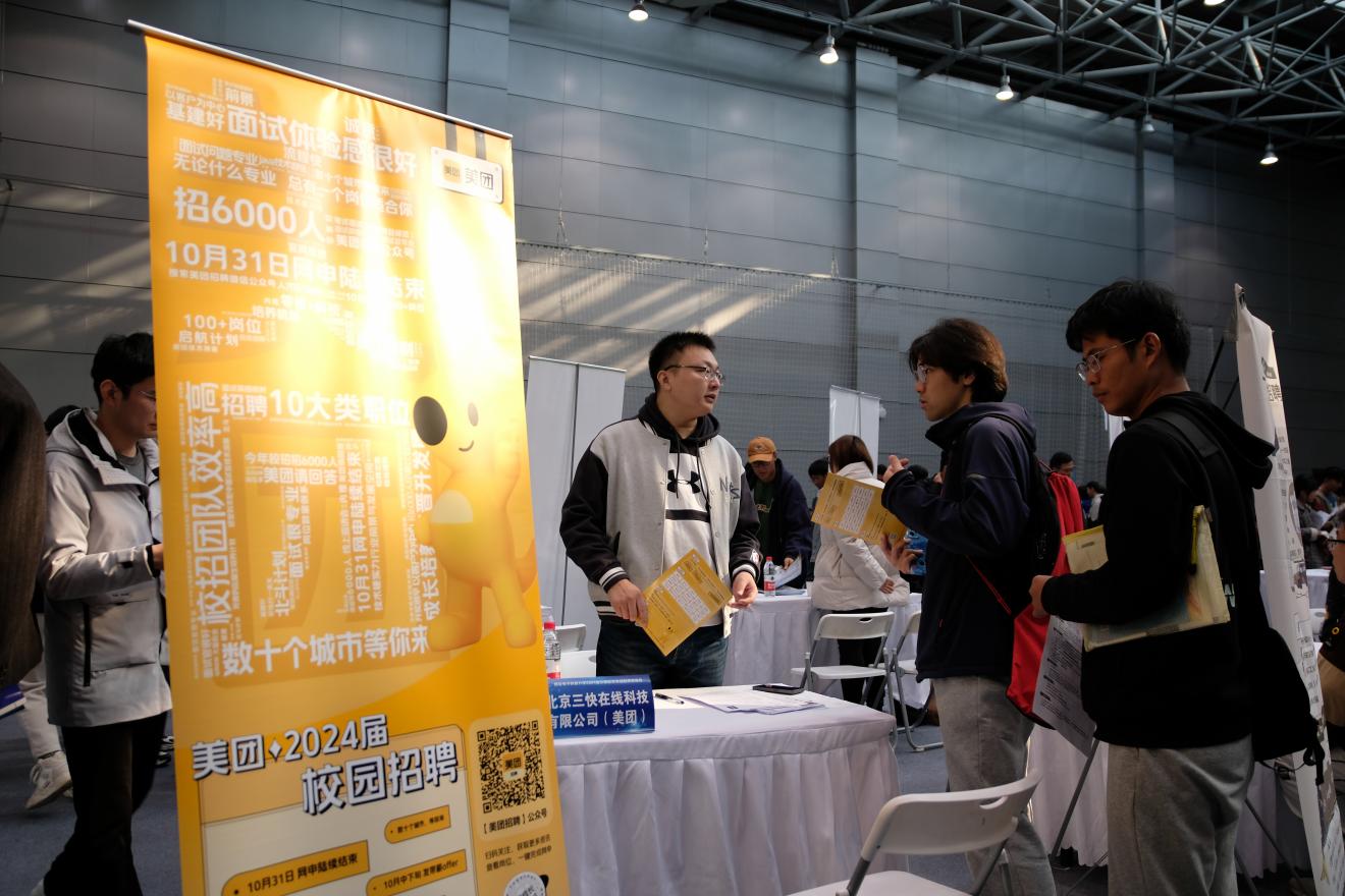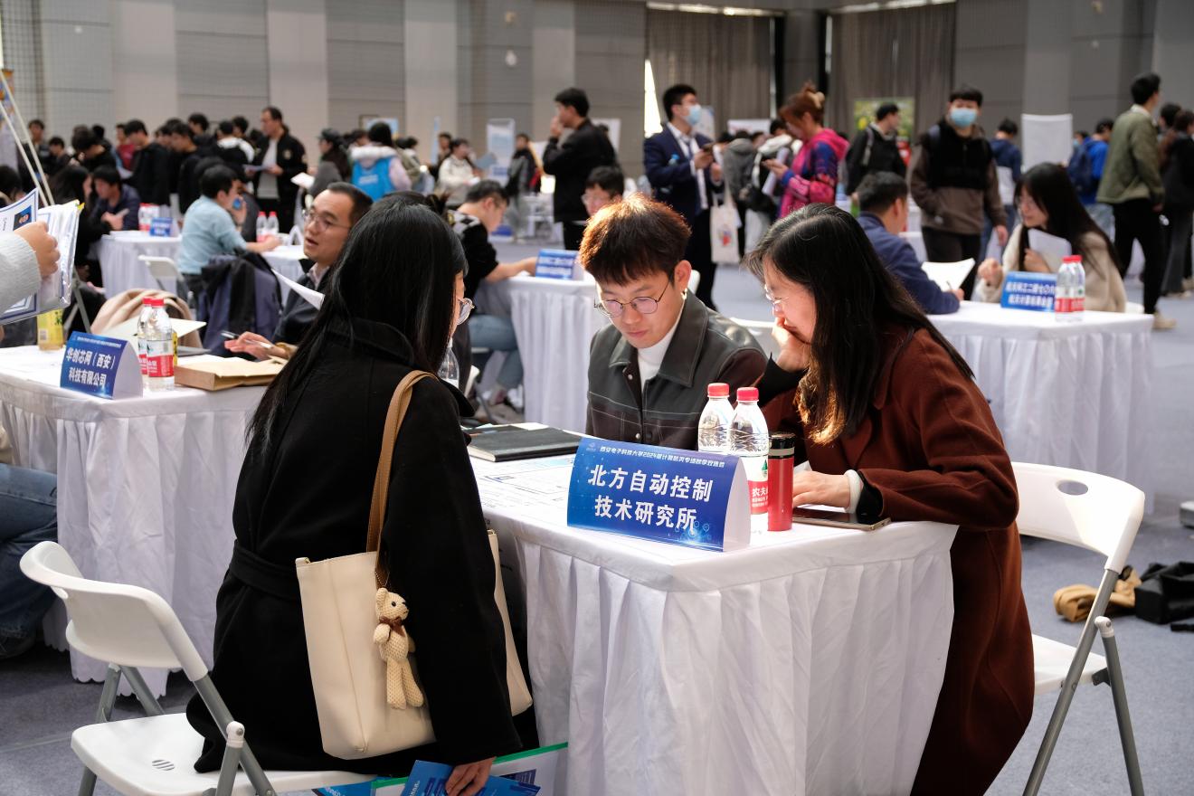 初冬的下午天气渐冷,但双选会现场人头攒动,气氛火热。不少用人单位的展位前都能看到同学们拿着简历排起了队。同学们积极了解用人单位的招聘需求并深入交流咨询。会场还有不少低年级员工前来观摩,提前感受就业氛围、了解就业形势。