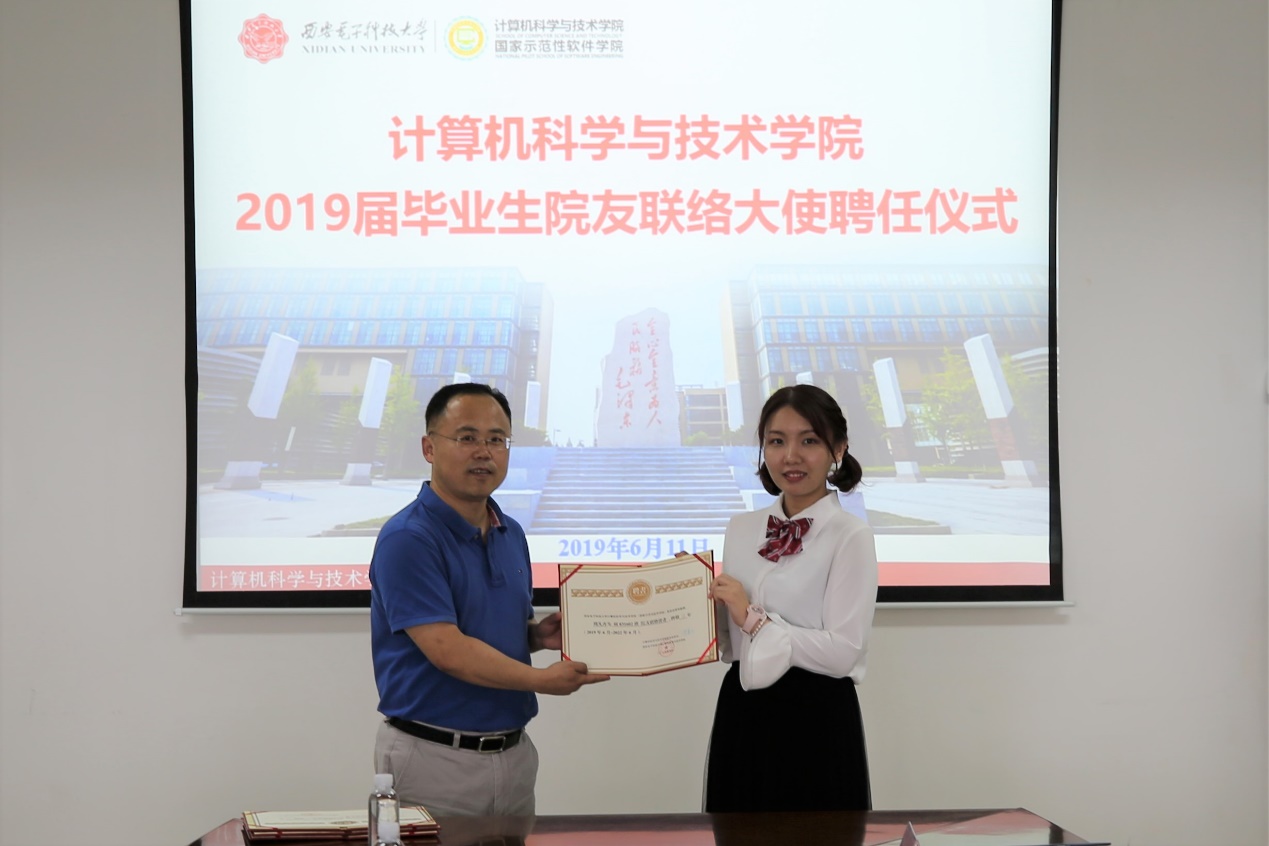 公司在2019届毕业生中共聘任联络大使31人,包括20名本科生、10名硕士研究生和1名博士研究生,实现了学院全部班级941名本科生、445名硕士研究生与15名博士研究生的全覆盖。毕业后,联络大使将成为院友会平台建设的重要力量,学院也会秉承终生服务院友的理念,持续为院友提供高质量优质服务,共同搭建好属于全体西电计算机人的精神家园。