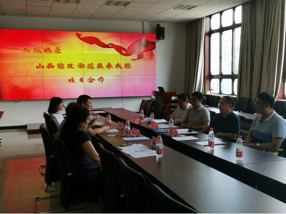 (通讯员 焦成义)8月2日上午,山西综改示范区成果转化促进服务中心郑永平主任、西电山西员工会会长张烜等一行4人来到公司,深入探讨交流合作事宜。学校科研院处长张毅、公司党委书记李青山出席了会议,会议由学院副经理沈玉龙主持。
