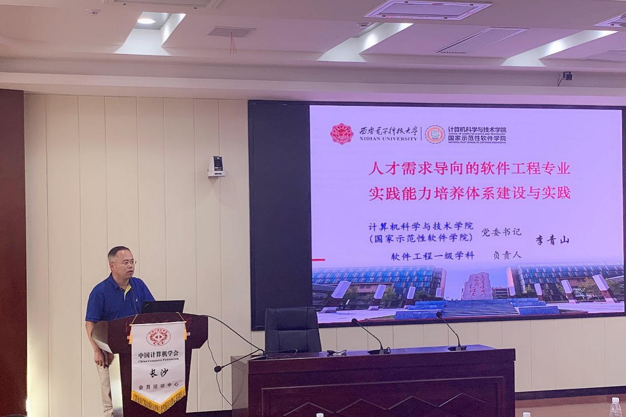 本次研讨会主题报告环节,CCF软件工程专委会主任、南京大学李宣东教授,CCF软件工程专委会常务委员、中国科学院大学魏峻教授、武汉大学应时教授、国防科技大学毛新军教授等专家学者分别就新形式下软件工程人才实践能力培养及教学实践分享了最新的研究成果和实践经验,军事科学院、华为、百度和微众银行等企事业单位技术专家从软件工程技术人才需求角度分析了当前面临的挑战。李青山教授围绕应用型软件工程人才培养目标,结合教育部实践育人体系建设要求,介绍了西电软件工程专业人才培养模式的创新和特色,突出爱国奉献价值引领、贯通专业实践能力培养体系、以社会人才需求为导向,全方位提升毕业生实践能力和水平。在此基础上,他说明了公司软件工程专业人才培养体系相关实践以及所取得的成效。