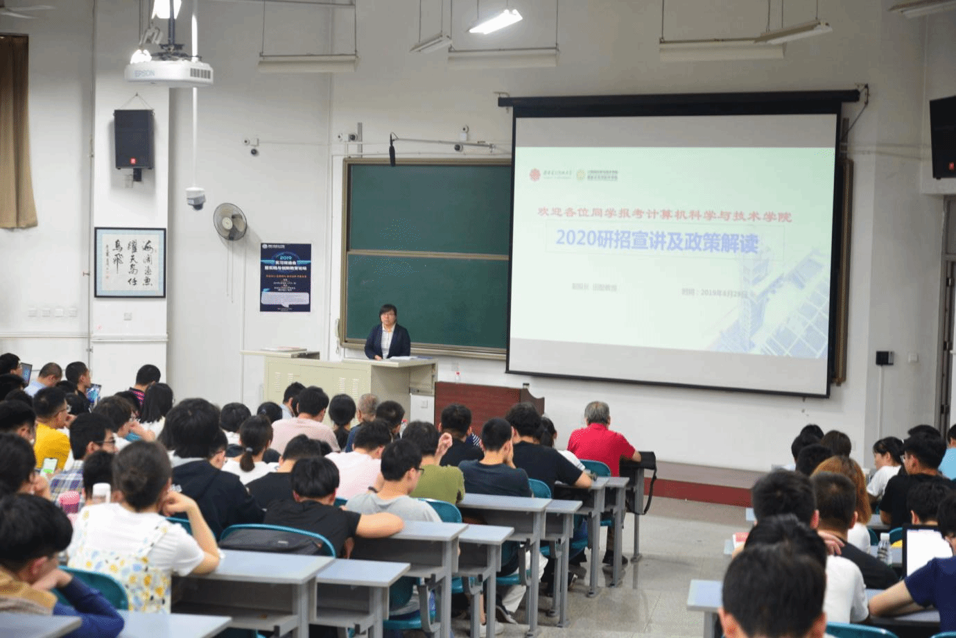 田聪从专业历程、团队建设、团队队伍、科学研究、公司产品和就业等方面对学院的情况进行了全面介绍。随后,她结合学院近三年研究生录取情况重点解读了2020年研招政策。她强调,学院始终坚持把人才培养放在第一位,近年来公司产品质量、学科水平、科研实力等方面显著提升。考研是继高考后的又一次关键选择,希望大家准确定位,掌握科学的学习方法,在求学的过程中不畏艰辛,选择在计科院继续深造,给梦想一个答案,谱写计科院新篇章。