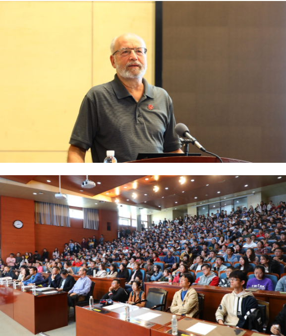 随后,Adi Shamir一行到行政楼210报告厅作了题为“The Insecurity of Machine Learning: Problems and Solutions”的学术报告。计科院执行经理崔江涛介绍了Adi Shamir的基本情况,他说,本次活动是“国际化牵引行动”的一部分,Adi Shamir是世界著名密码学专家,在密码学方面有着深厚造诣,希望与会师生抓住这次宝贵的机会积极交流。全校四百余名师生前来聆听,现场座无虚席,Adi Shamir循序渐进讲述了深度神经网络在目标识别、自动驾驶和网络安全方面的问题以及解决方法,会后和师生进行了深入的交流。
