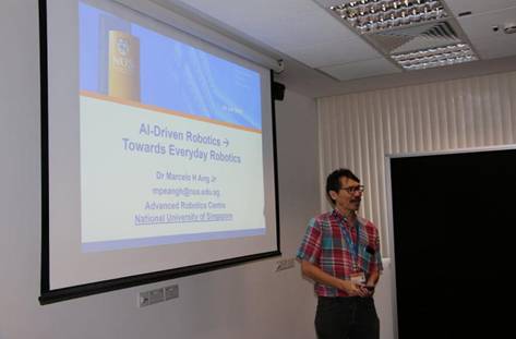 23日下午,在新加坡科技研究局,来自Neph Tech的王圣啸博士向同学们作了题为“Provider of a User-Centric Blood Vessel Surveillance Programme for Dialysis Centres”的报告,重点讲解了他们公司自主研发的一款基于人工智能技术开发的,能够有效监测血管壁厚度的产品原理并分享其开发经验与经历,使同学们了解了人工智能产品开发过程中的艰辛。来自中新智擎的Huang Wei Bo博士向同学们讲述了机器人产业的应用现状和技术架构,分享了自己在企业创新过程中的经验。“智能机器人的最后,依旧是取决于AI技术的发展。”在介绍完机器人产业的现状之后,黄巍伟博士又引领同学们展望了AI技术在机器人产业的应用前景。黄巍伟博士的总结激发了同学们对AI技术的学习兴趣。