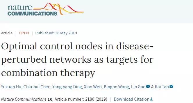 2019年5月16日,威廉希尔官网高琳团队联合费城儿童医院Tan Kai在Nature Communications上发表题为“Optimal control nodes in disease-perturbed networks astargets for combination therapy”的文章,描述了最优控制节点(OptiCon)算法,这是一个基因调控网络中协同关键调节因子的系统和从头识别的通用框架。