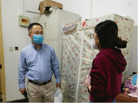 随后,学院工作组一行分别到竹园1号楼、2号楼和3号楼公寓员工宿舍,走访了解已返校入住员工的假期生活学习状态、疫情期间思想动态、返校途中个人防护、寝室卫生消毒等情况。崔江涛谈到,疫情对员工各方面的影响是客观存在的,学院要以返校员工为窗口,尽可能全面地详细掌握当前公司产品环节面临的问题与挑战,制订科学合理有效的工作方案与实施计划,确保学院人才培养质量。