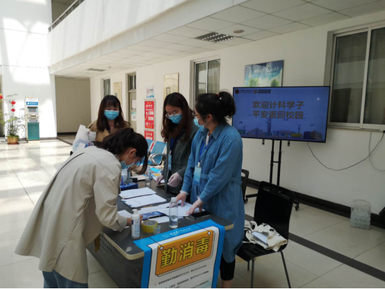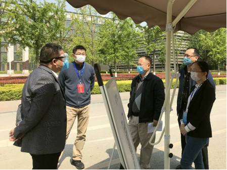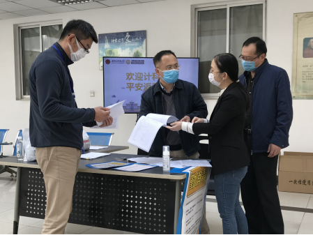 最后,学院工作组一行专程到南校区东门员工返校入口,向现场负责入校登记、引导、检测、消毒等工作的书院负责人与工作人员,了解员工进入校园的具体流程与返校进度,确认了学院已返校员工的相关信息。